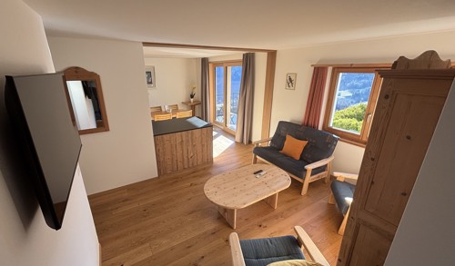 Jedes Zimmer verfügt über eine Dusche/WC, einen Sitzbereich und TV. Die gemeinnützige, sonnige Terrasse lädt zum Verweilen ein. Einladend und gemütlich sind die Zimmer mit hellen Holzmöbeln. Das Appartement (3 Zimmerwohnung mit Balkon) ist möbliert und mit den wichtigsten Einrichtungen ausgestattet.